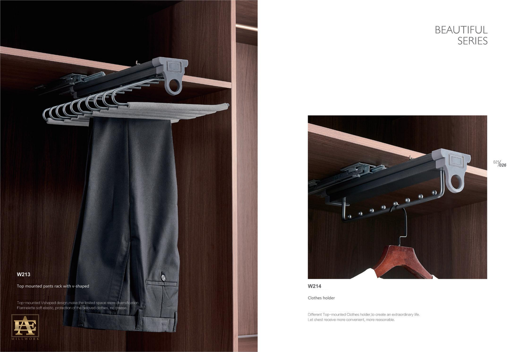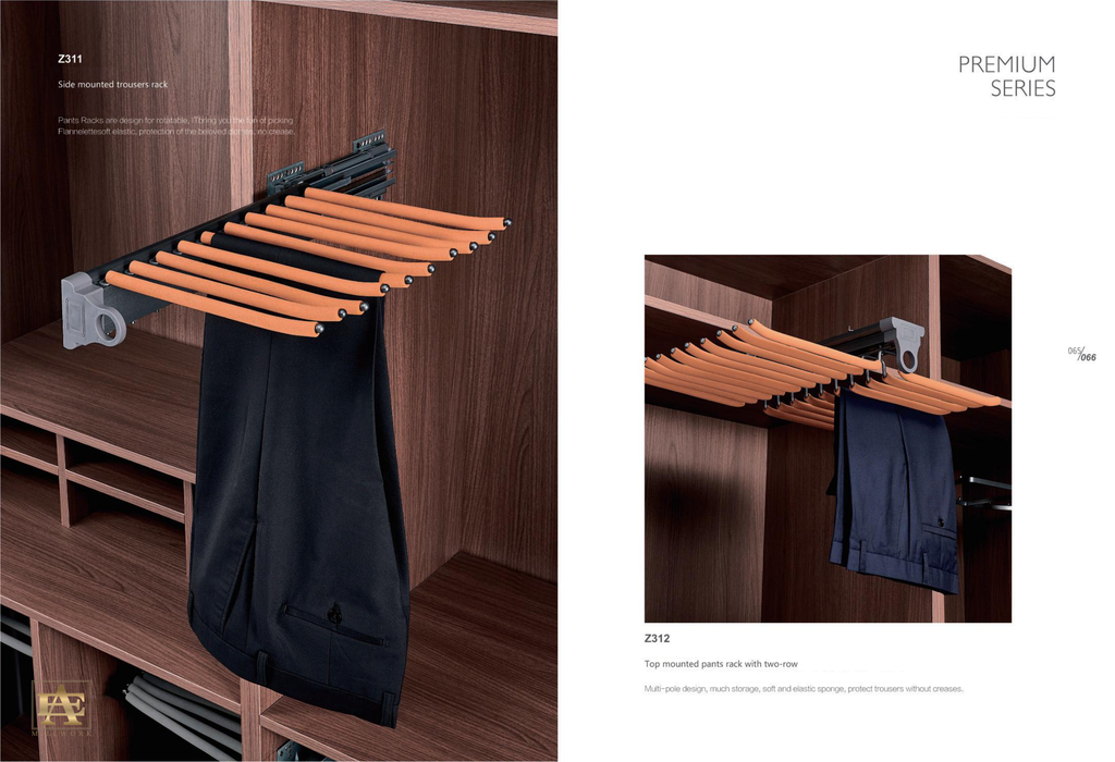 Available in gray, orange or coffee/red brown finishes to complement any décor, the pull-out design keeps your pants visible and within reach.
