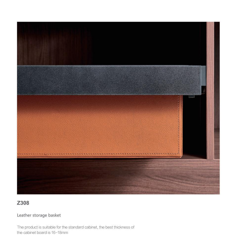 Organize your closet with this elegant leather wardrobe basket featuring a smooth sliding system for easy access. Available in four widths to fit a range of cabinet configurations.